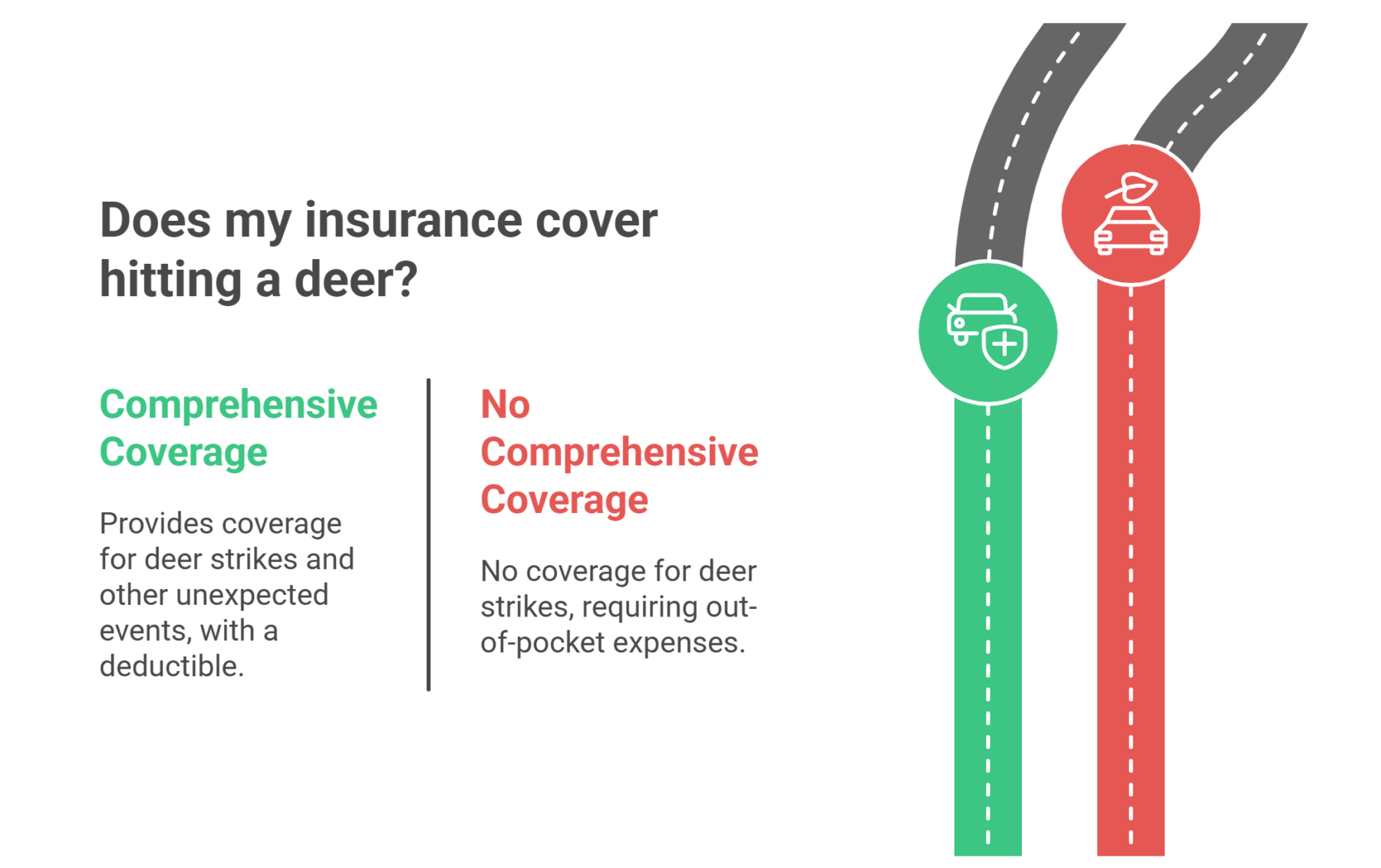 Hitting a deer can be scary and stressful, but knowing your coverage ahead of time can make all the difference. If you carry Comprehensive coverage, your insurer helps cover repairs (minus your deductible). Without it, you’re responsible for the costs yourself.